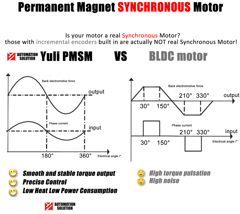 In fact, our tech team believe that those with incremental encoders built-in are NOT real PMSM,especially for a synchronous motor!Guangzhou Yuli design and manufacture real PMSM.