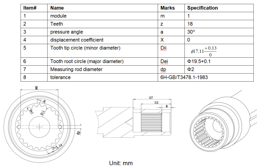 Involute Internal spline parameters